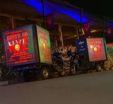 Compact, bright, and always on the move. Our LED moto billboards slip through traffic while keeping your promo glowing across the busiest areas.